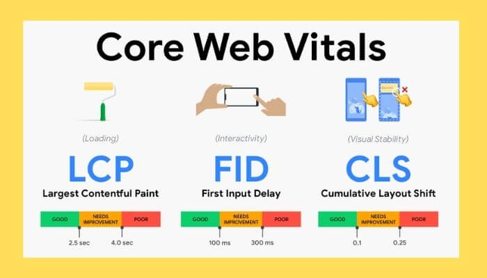 These Core Web Vitals consist of three distinct facets of page speed and user experience measurements which will cover loading, interactivity, and visual effects. They are known as Largest Contentful Paint (LCP), First Input Delay (FID), and Cumulative Layout Shift (CLS).